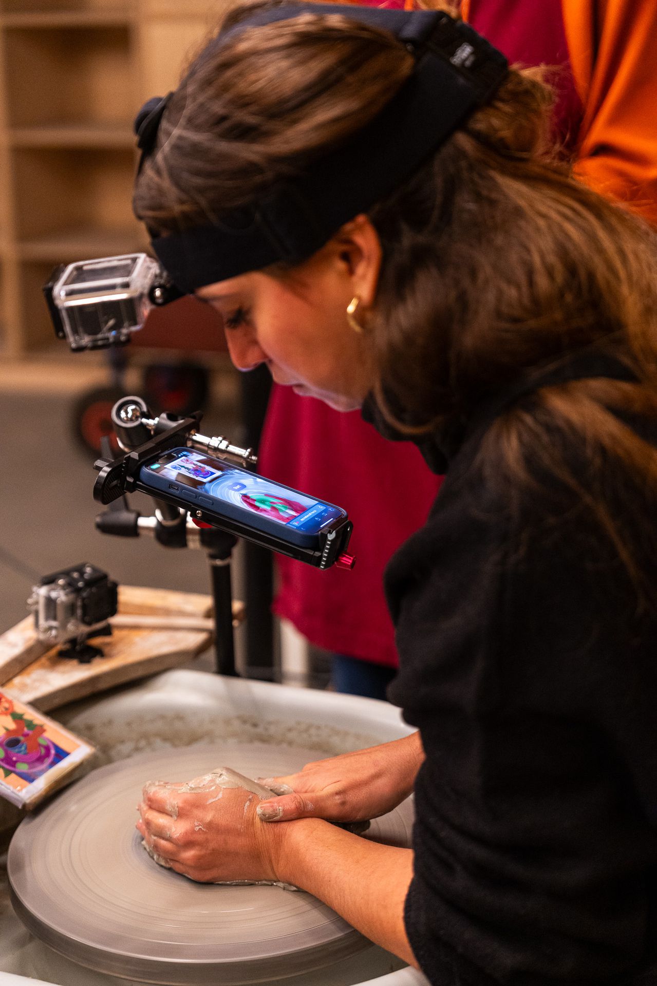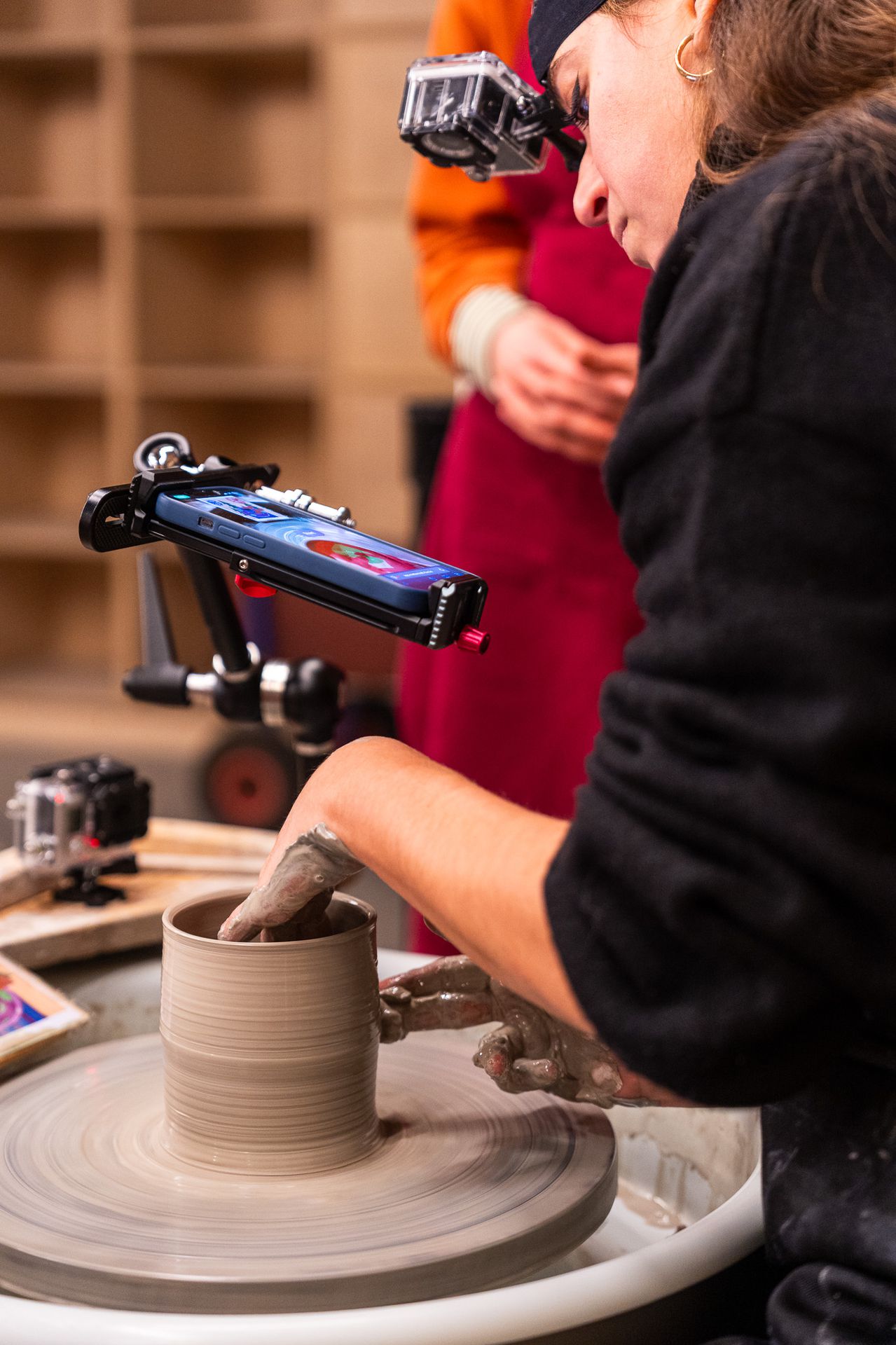 The Italian ceramicists, drawn from the Artex network, used an immersive learning tool originally designed to teach wicker-weaving techniques for basket making. The tool was developed by Ian Garcia for Bokrijk’s pilot project Working Wicker Digitally. During Weaving Ceramics, the tool was applied in a new context and in addition to this, a new immersive instruction with augmented reality saw its first use, this time teaching ceramics.