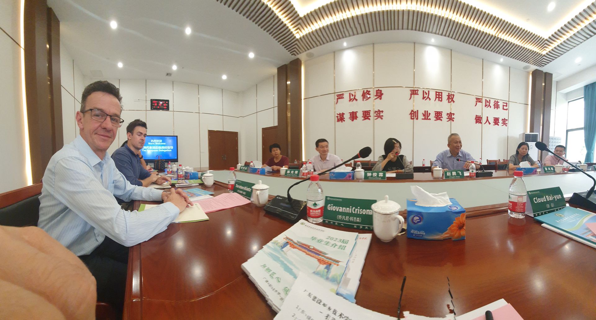 On August 21, 2023, an esteemed delegation consisting of Giovanni Crisonà , President, and Torsten Kietz, Senior Advisor of Skillman.eu, alongside Cloud Bayun from UK Naric and other distinguished members, convened in Guangdong, China. The purpose of this gathering was to engage with Pengfei Zhao, President of Guangdong Construction Polytechnic, as well as several managers and educators. The primary focus of the meeting was to explore potential avenues for collaboration, with specific emphasis on the promising opportunities presented by the Tracks4Crafts.eu initiative.