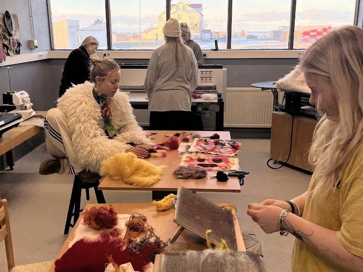Fashion design students from the Iceland University of the Arts (LHÍ) spent a week at the Textile Center to explore traditional techniques, digital equipment, and machinery. Activities included traditional and digital weaving, felting, embroidery, and visits to local textile sites. The visit enriched student learning and contributed to the Center's ongoing development.