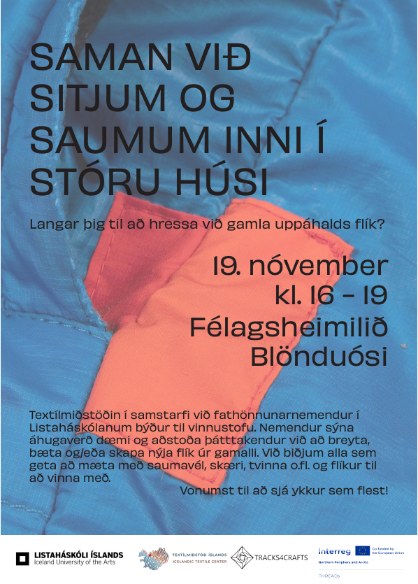 In collaboration with LHÍ fashion design students, the Textile Center hosted an open, informal sewing and upcycling workshop at the Blönduós Community Center. Participants altered, improved, or created new garments from old ones. The event was valued by the local community as an opportunity to strengthen connections.